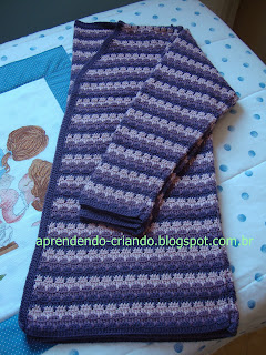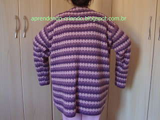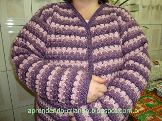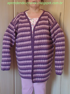 Parabéns pelo resultado da cirurgia, principalmente pelo acréscimo de saúde e de anos de vida que você ganhou ao eliminar os 35 quilos. Parabéns mesmo. Que Deus te ilumine e te faça melhorar mais e mais, pois sei que você, como eu, quer criar netinhos lindos um dia... a blusa é linda, as cores foram bem escolhidas. e agora? Vai começar do zero? ... Bom, se você teve paciência de desmanchar (que era a parte chata...) fazer de novo vai ser moleza. Beijos!