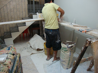 Neste mês de abril estão completando seis anos que meu marido faleceu, e ele era natural de Araripina /PE. Coincidência ou não, estou para pintar a casa e resolvi colocar moldura de gesso nas paredes, e olha só a minha surpresa... Dá para ver na foto que o gesso usado pelo Sr. Toninho o gesseiro vem justamente de Araripina / PE, que é o maior pólo gesseiro do Brasil (http://pt.wikipedia.org/wiki/Araripina).